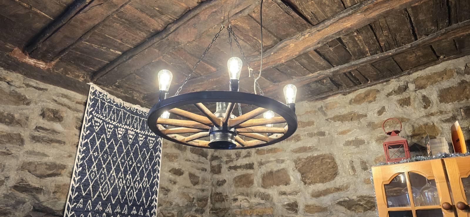 Изработвам автентични етнографски ПОЛИЛЕИ от aреставрирани колела от каруци. Различни диаметри-малки-60-67 см диаметър,средни-67-73 см,големи-73см-80 см диаметър! Цвета на лака е по желание на клиента-орех,кестен,дъб,палисандър,яхтен, фасунгите може да бъдат Е 14 или Е 27 стандартни. Подходящи за вашите механи, навеси, барове, битови помещения, барбекюта, беседки, подаръци и др 🦋
